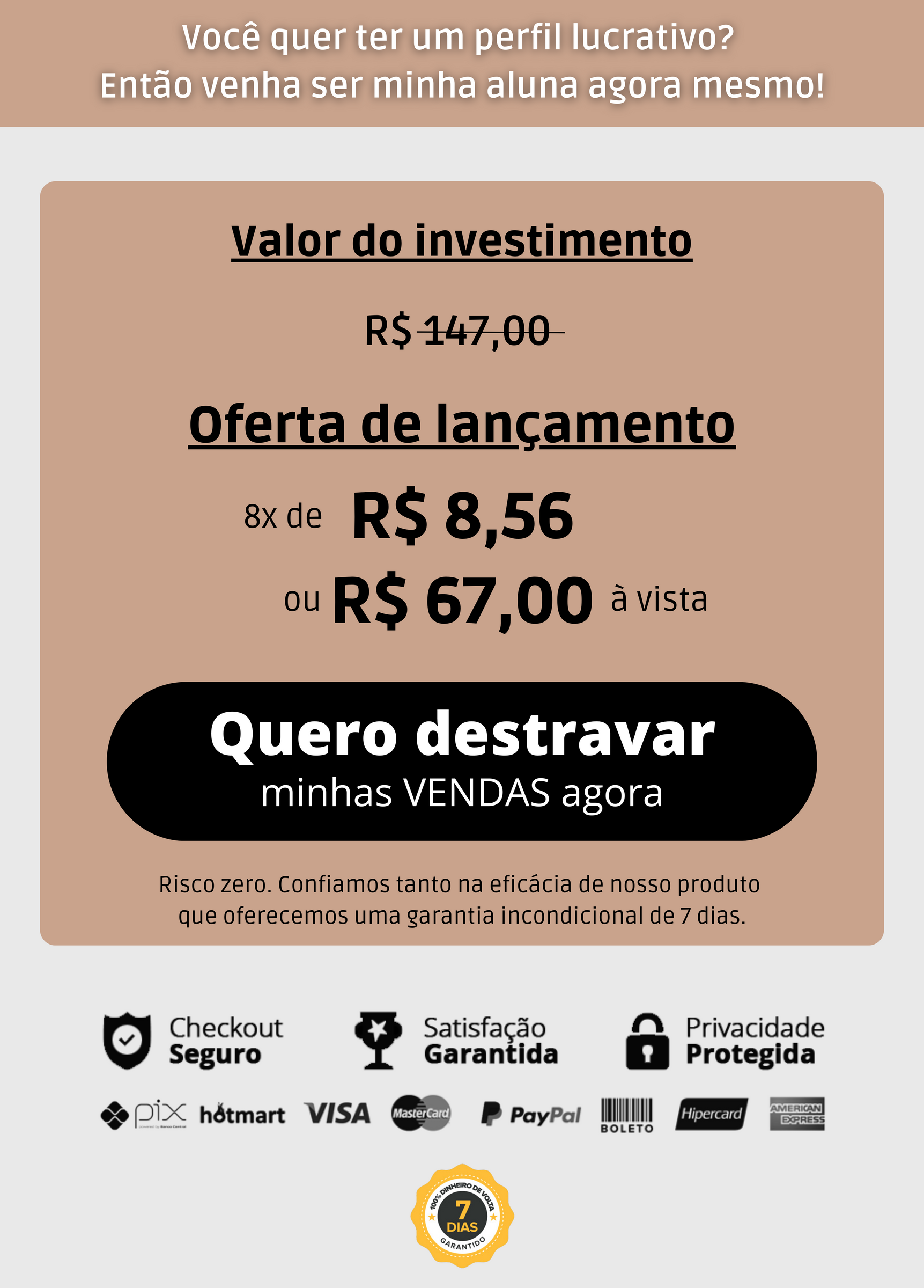 que oferecemos uma garantia incondicional de 7 dias.
